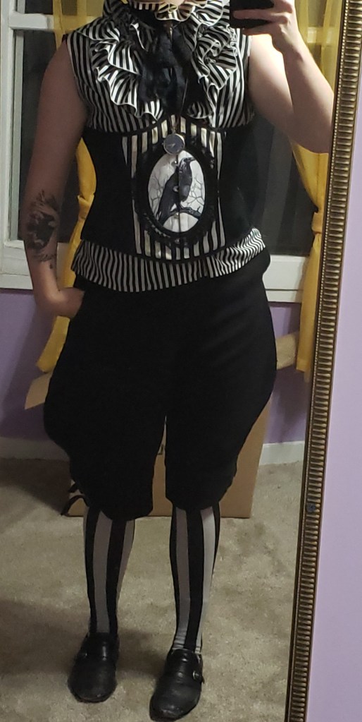 Later in the week, Arkady endeavored to introduce me to Vertex. I’d been putting in applications everywhere and trying to dress for comfort and the weather all week. It felt nice to look glamourous again. We’d had a clothing donation from Rowan’s gardening client earlier in the day and Vali had found a wrestling leotard. It looked ridiculous on him and he delighted in knowing it. “Look at this hot mess goblin look!” I’m not saying that to be critical; it was one of the few things we could all laugh at as a household. His orange hair was even sticking straight up as he pranced around in the odd outfit.