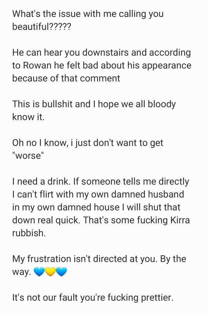 He repaid within the next few days. I loved this sweet moment between the two of them and hyped it accordingly– compersion, of course, being one of my favourite attributes of polyamory. Vali, predictably, had the opposite reaction.