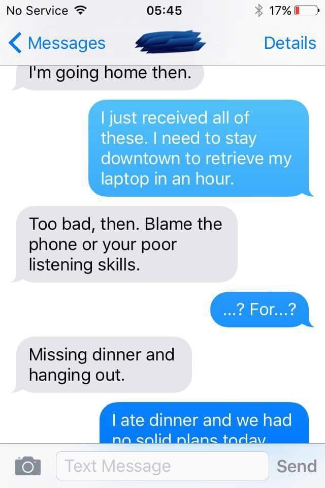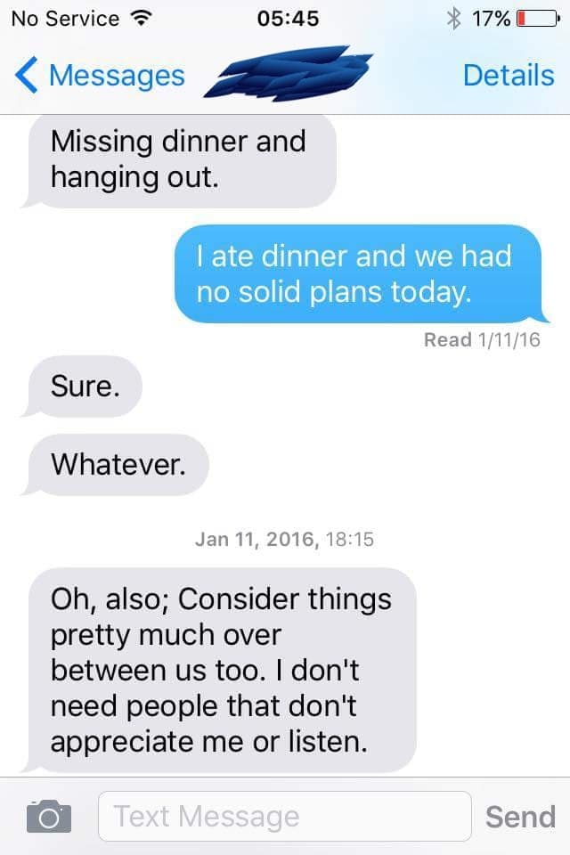 Funny enough, technology, which had apparently been a conduit between Kirra’s control and my mental illness, was what prompted the end of the relationship. My laptop, an old Dell, had its hinges fail, causing the screen to become a floppy companion to the keyboard. Simultaneously, my iPhone 4(s?) was starting to fail and I would occasionally be subjected to a flood of texts that had been sent to me over the past fifteen minutes. Kirra knew that I was delayed in getting texts, but as always, her inconvenience was my problem.
