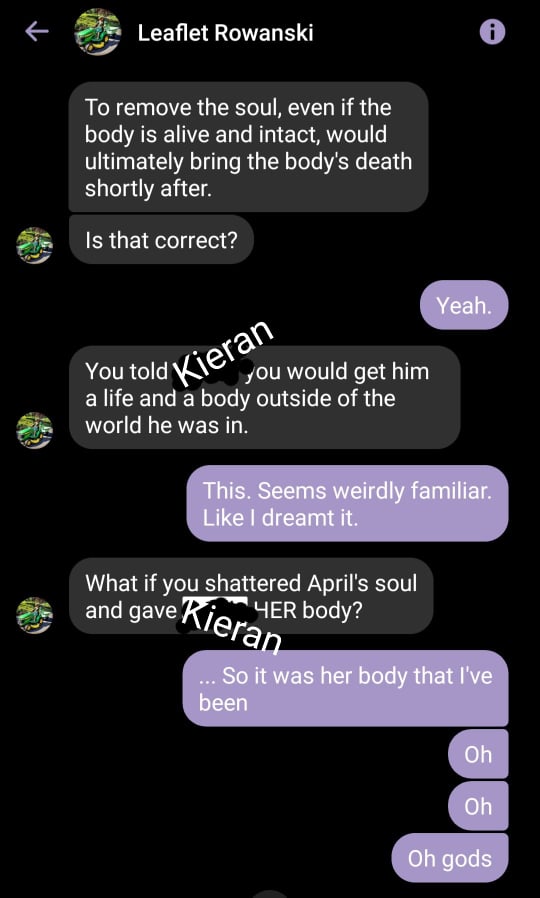 It didn’t help that they once witnessed that great Abysmal inworld void that recycles lost bits of personality into someone new. If you’ve ever read ‘Unwind’ by Neal Shusterman, it gave Xanthe night terrors for weeks.
