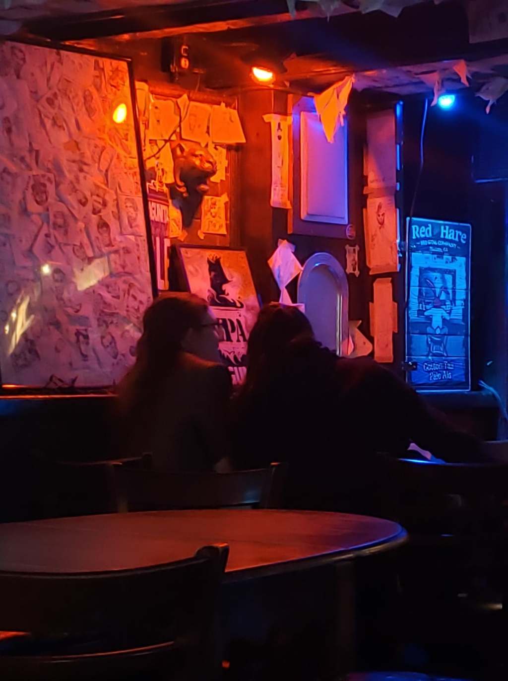 Rowan considered this as a challenge and tried to win Apollo over. Apollo almost seemed startled, to be honest. I don’t think he ever expected that a newcomer I would bring in would ask, so intensely, for his attention. I don’t even remember the dialogue, I just remember getting drink after drink, watching Rowan and Apollo talking to each other. Rowan was buying both of us drinks, seeming to pace themself better than Apollo and I both.