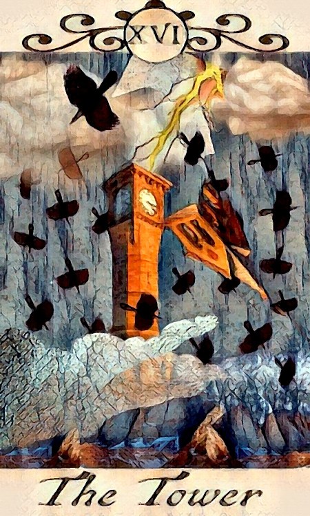 I wasn’t well-versed in Tarot at the time, but we had fun chatting with the bartender. We told them we were a polycule out for Valentine’s Day, who was dating whom. I wish I could tell you what the other three drew. But goddamn if my ass didn’t draw the fucking Tower.