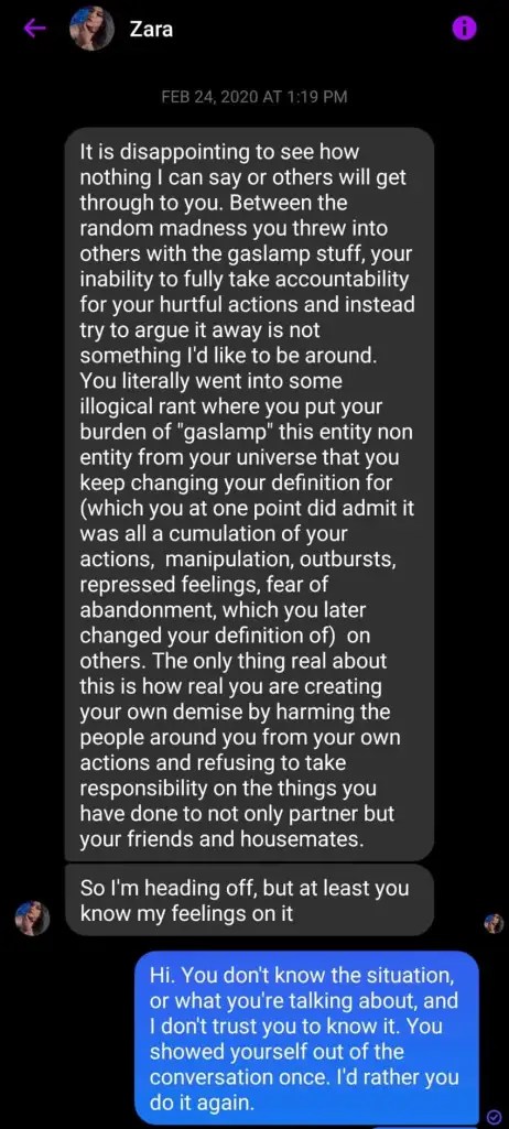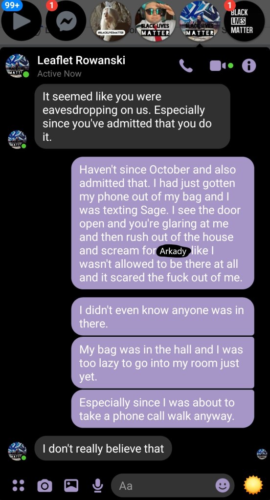 Xanthe is officially kicked out of Crosman Terrace, homeless until their lease on their new place begins on August 18th, 2020. Sage officially cuts ties with them, the FB Live being where they draw the line. (But not being in contact with abusers, violating journals, and verbal abuse.)