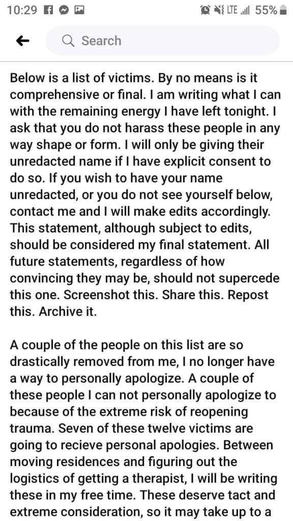 Late December of 2018: Vali sends a message to at least a few Facebook friends that a vitriolic ex was threatening to tell his crushes that they were his crushes, so, in a frenzy, he feels that he ‘has to’ confess his feelings to his crushes.